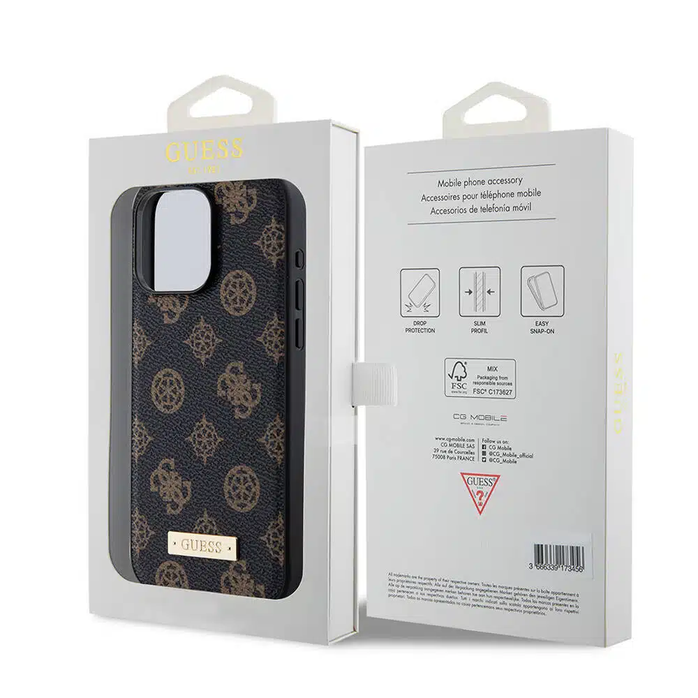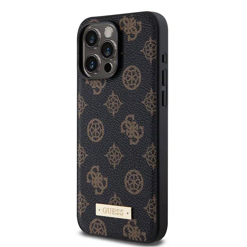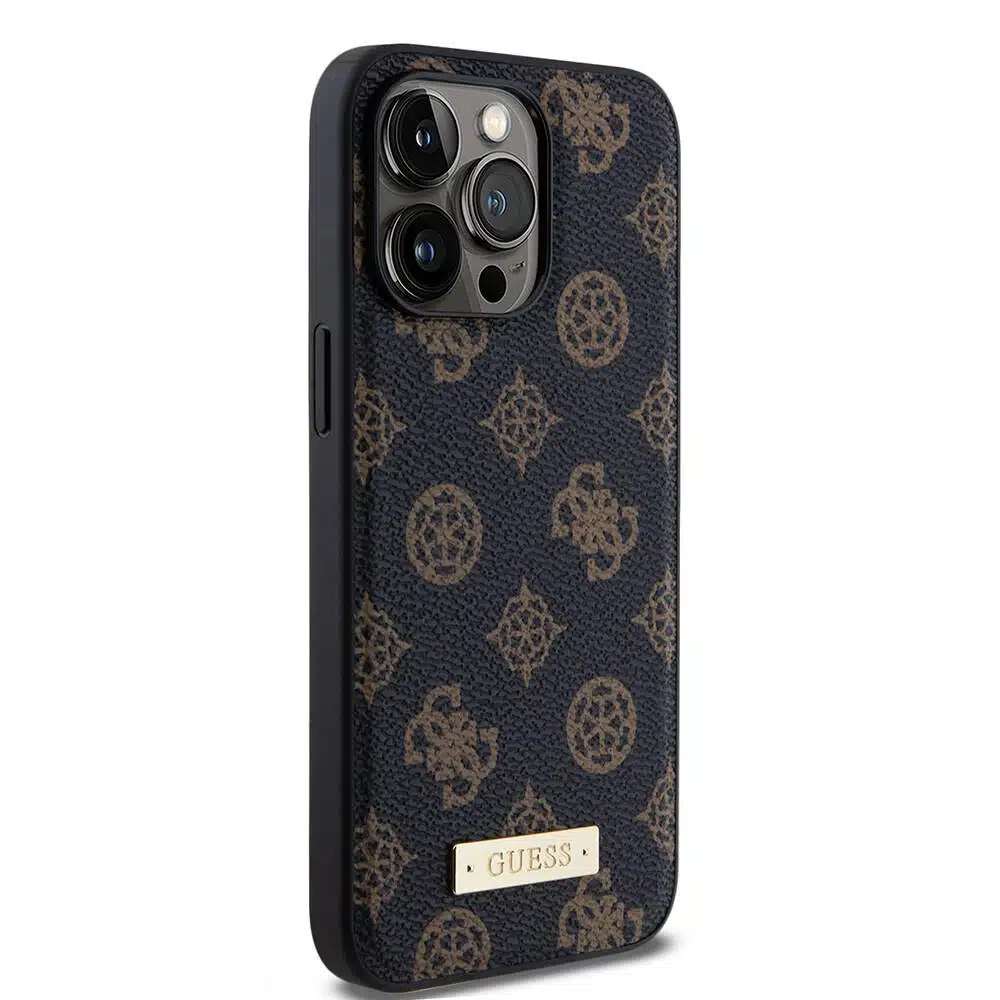 Apple iPhone 14 Pro Max Kılıf Guess Magsafe Şarj Özellikli PU Deri Desenli Metal Plaka